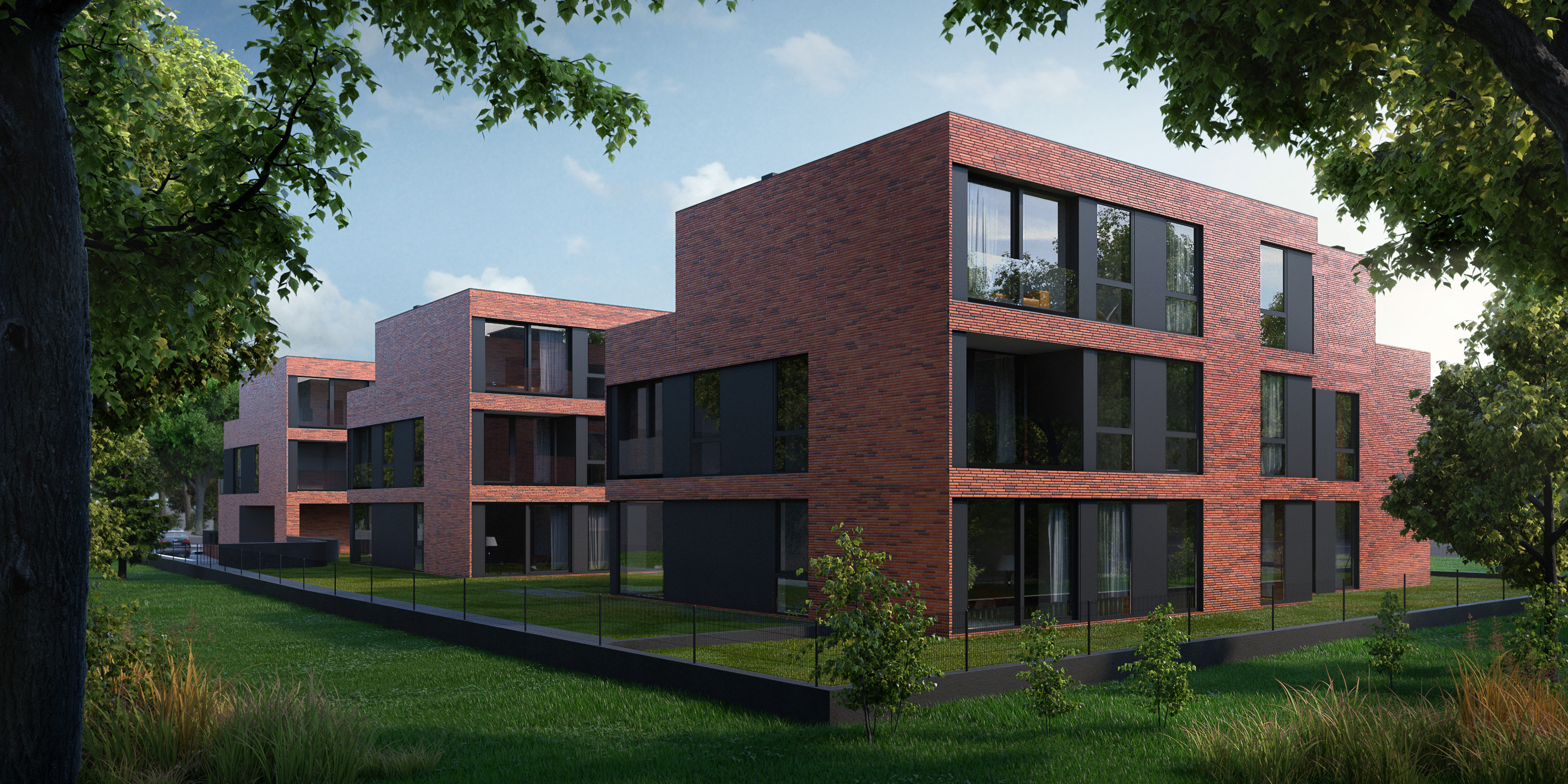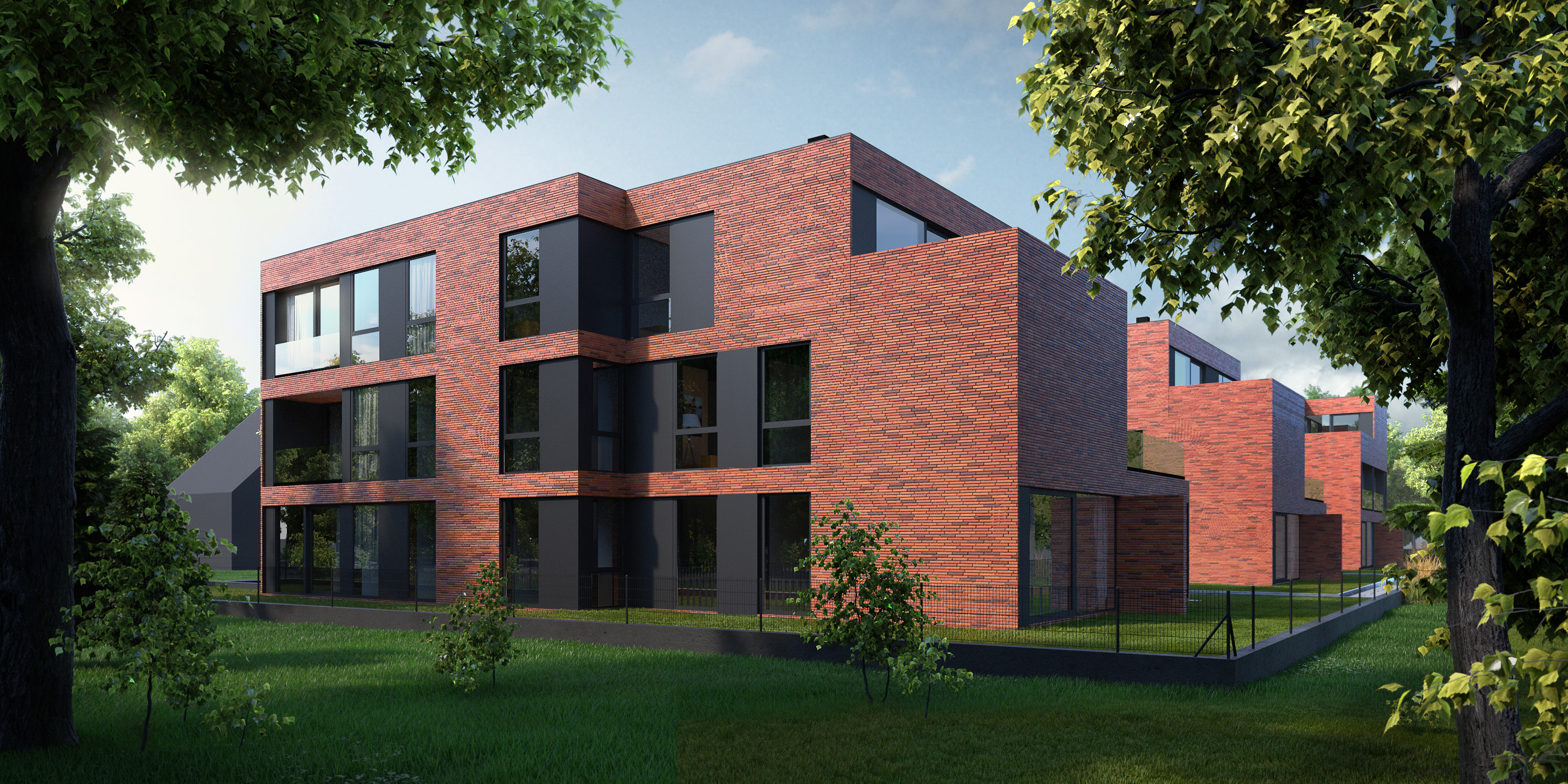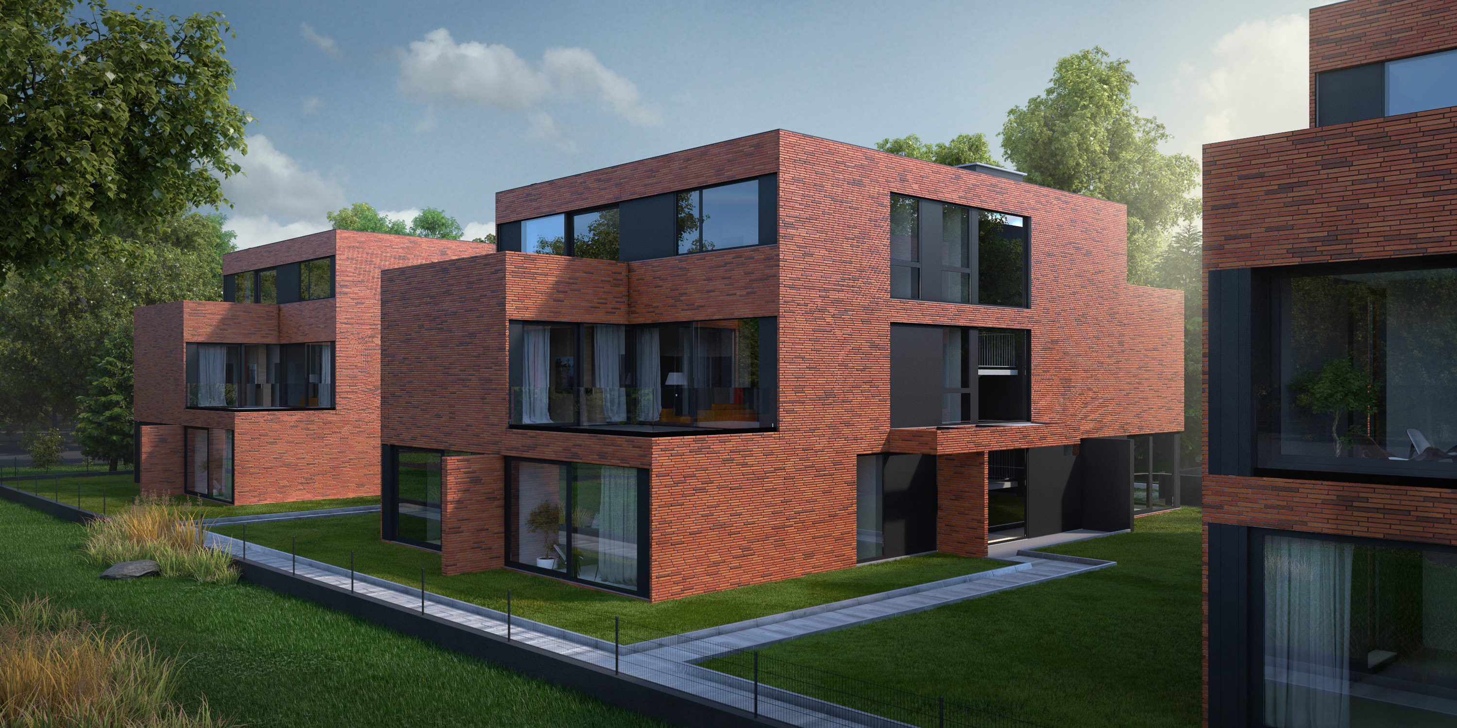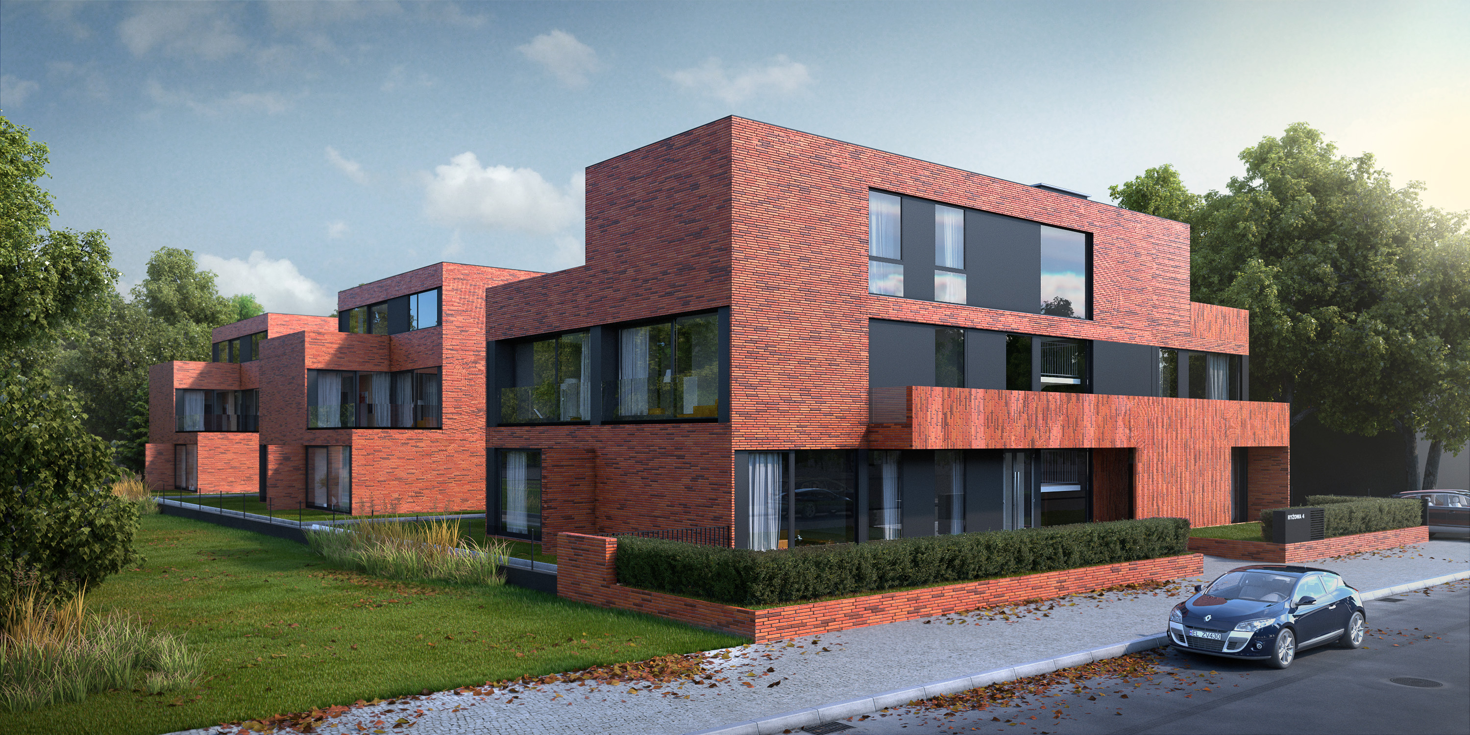 trzy, 3 – kondygnacyjne budynki wielorodzinne, każdy z własnym garażem podziemnym.